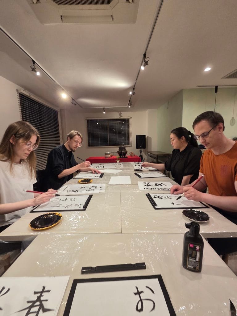 Calligraphy Class Osaka is a traditional cultural activity that focuses on writing Japanese characters using brush, ink, and paper. Calligraphy is considered an art that reflects mindfulness, balance, and inner calm, deeply connected with Zen philosophy. In this experience, you will not only practice calligraphy but also have the opportunity to enjoy a tea ceremony, which shares the same spiritual background as Shodo.