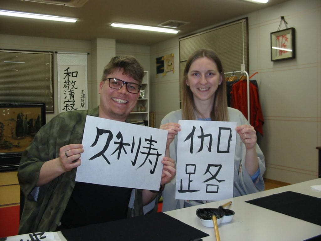 After calligraphy, you can also experience a tea ceremony and drink matcha.
